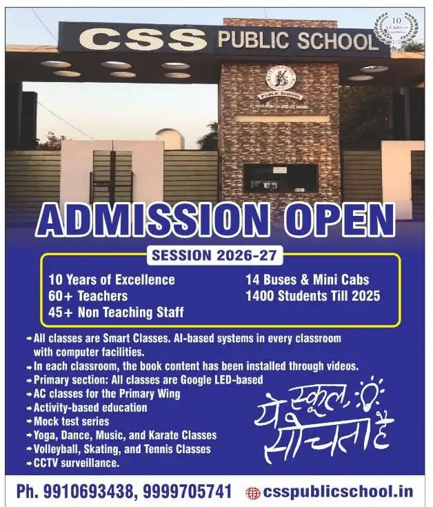 “Our school (C.S.S.PUBLIC SCHOOL ) is committed to providing a nurturing and inclusive environment where every student is empowered to achieve academic excellence and personal growth. With a team of dedicated educators, state-of-the-art facilities, and a well-rounded curriculum, we ensure that students not only excel academically but also develop critical life skills like karate classes,Dance classes,Computer classes, etc. Our emphasis on values, creativity, and innovation prepares students to thrive in a rapidly changing world. At C.S.S.PUBLIC SCHOOL, we believe in inspiring a lifelong love for learning and building a strong foundation for future success.”